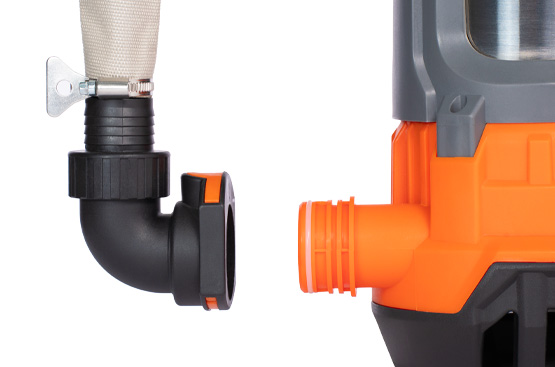 Насос имеет специальный быстрозажимной разъем, который позволяет оперативно и без лишних усилий присоединить патрубок со шлангом к насосу.